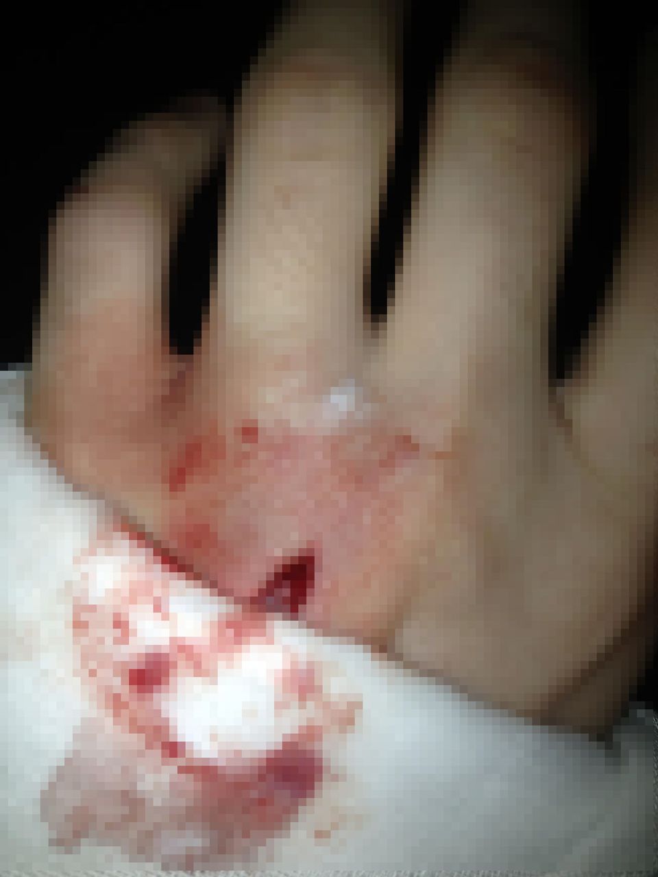 こっちに突いてくる包丁をガードしようとするから、どうしても手が真っ先に被害に遭うね