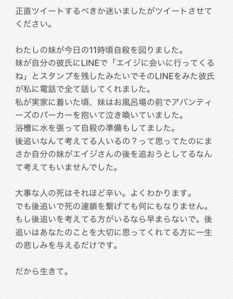 野猿が解散した時ですら後追い自殺があったぐらいだから、