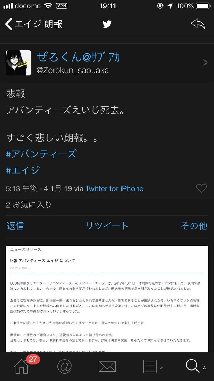 【緊急】溺死したYouTuberアバンティーズ・エイジの女性ファン、次々と後追い自殺してしまう