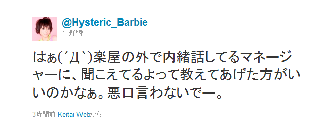 平野綾がマネージャーから悪口言われとるwwwwwww