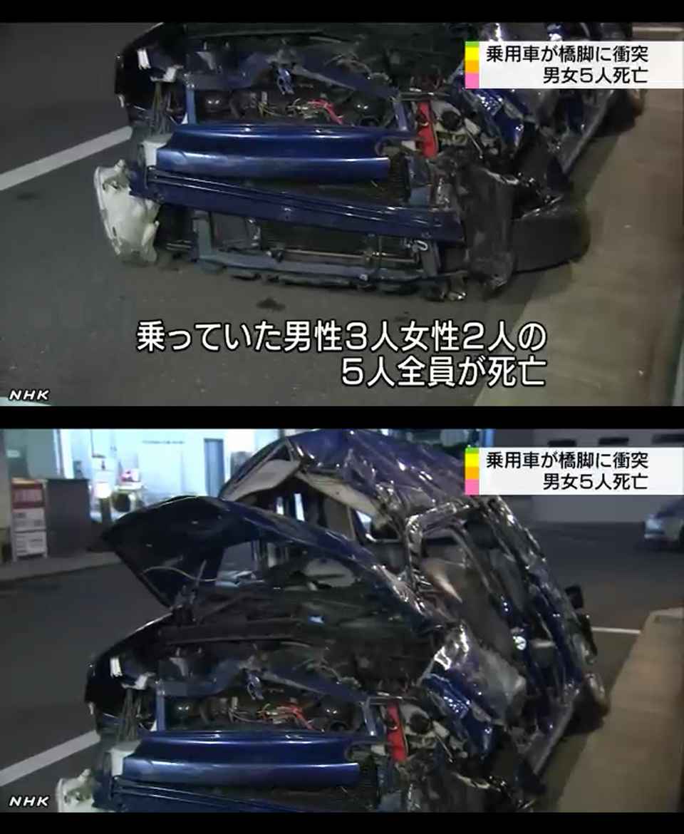 31日未明、高松市の国道で乗用車が高速道路の橋脚に衝突し、高校生2人を含む乗っていた16歳から21歳までの男女5人全員が死亡しました。