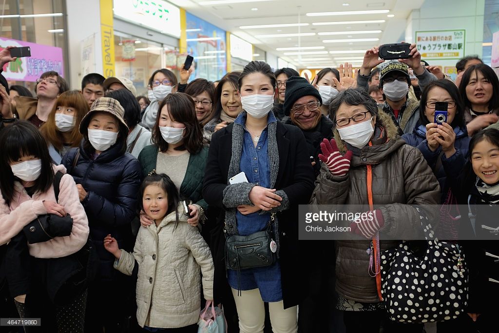 KORIYAMA, JAPAN - FEBRUARY 28: Members of the public wait for Prince William, Duke of Cambridge at Koriyama Bullet Train Station on February 28, 2015 in Koriyama, Japan.