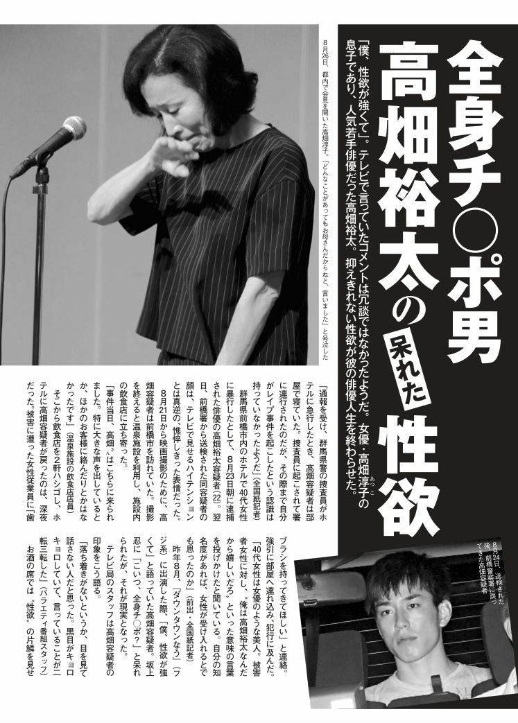 8月23日に強姦致傷容疑で逮捕された高畑裕太容疑者。FLASH(9月13日号)によると、次の様に犯行の詳細が書かれている。