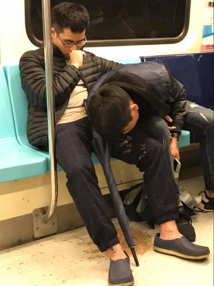 【超閲覧注意】電車で隣の乗客のゲロ食らうやつwwwwwwwww
