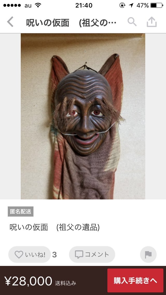 【悲報】メルカリ民、危険すぎる仮面を出品してしまう