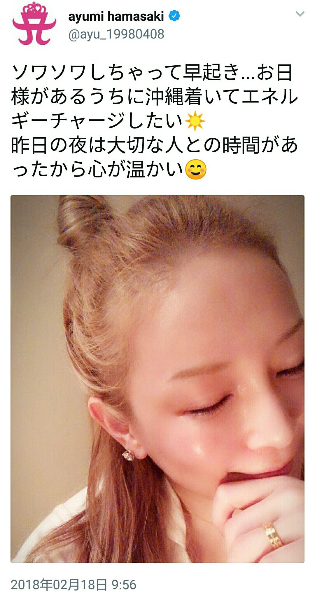 浜崎あゆみ「大切な人との時間」と左手薬指に指輪をはめツイート。