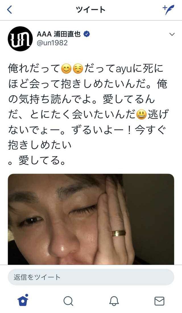 浦田直也(AAA)「ayu愛してるんだ。会いたい。抱きしめたい」と誤爆?