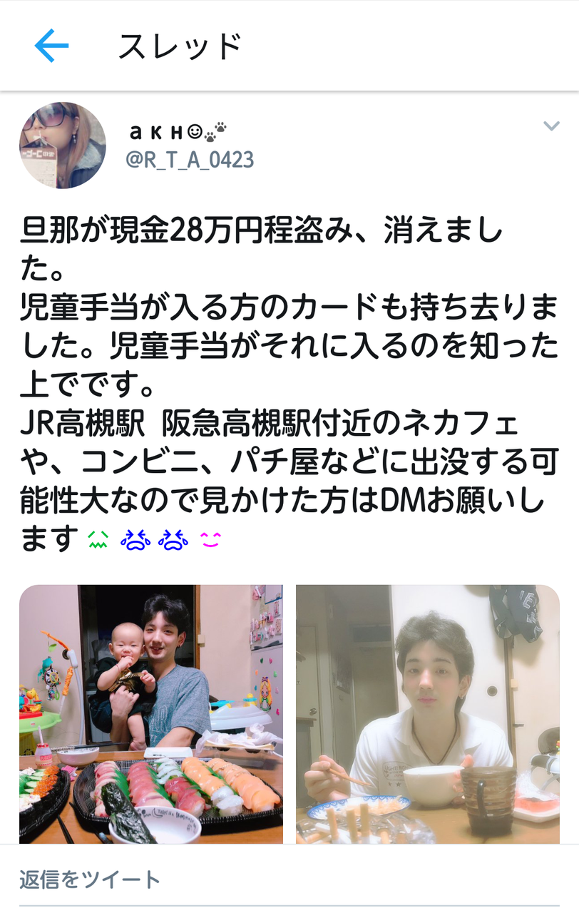 JR高槻駅 阪急高槻駅付近のネカフェや、コンビニ、パチ屋などに出没する可能性大なので見かけた方はDMお願いします😖😭😭😊