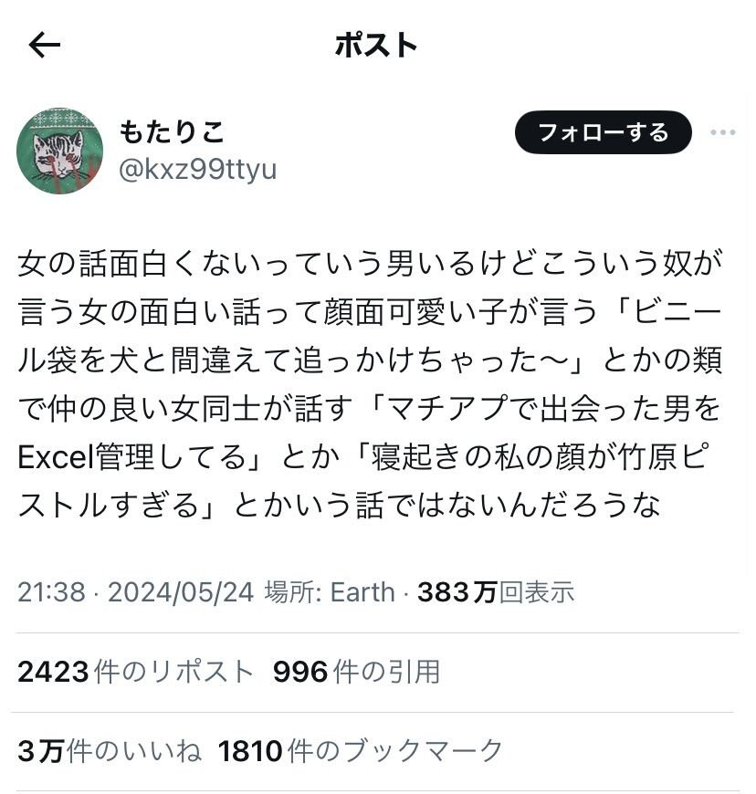 【悲報】女のユーモア、つまらなすぎてバズってしまう