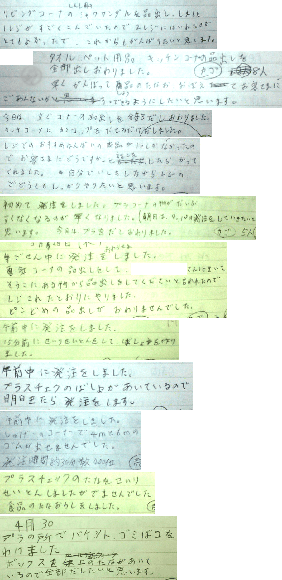 俺も字が下手だし、バイトなのに業務日誌なんてやらされても書くことねーし、こんなもんだろうな。