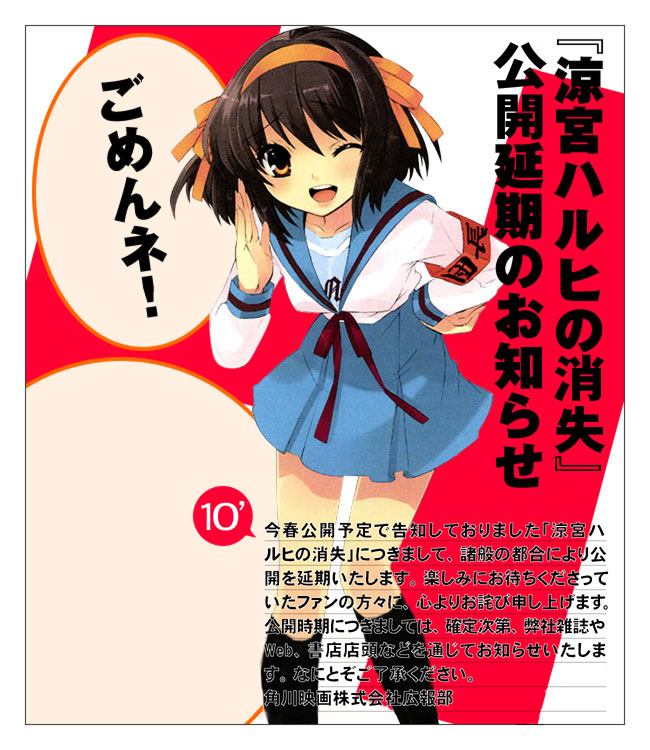 本気で「涼宮ハルヒは終わったコンテンツ」という言葉が脳裏を過るあ at 2010年09月12日 18:37 ID:4LPXIXPpO