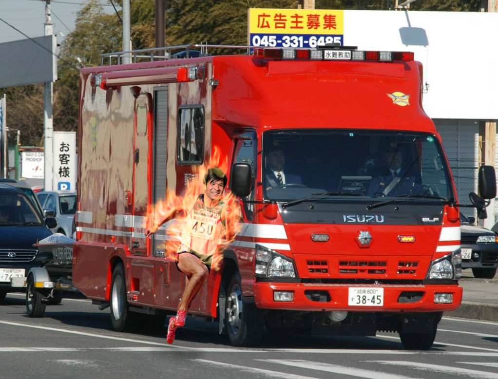 照英が火だるまになりながらも消防車を奪ってる画像をください