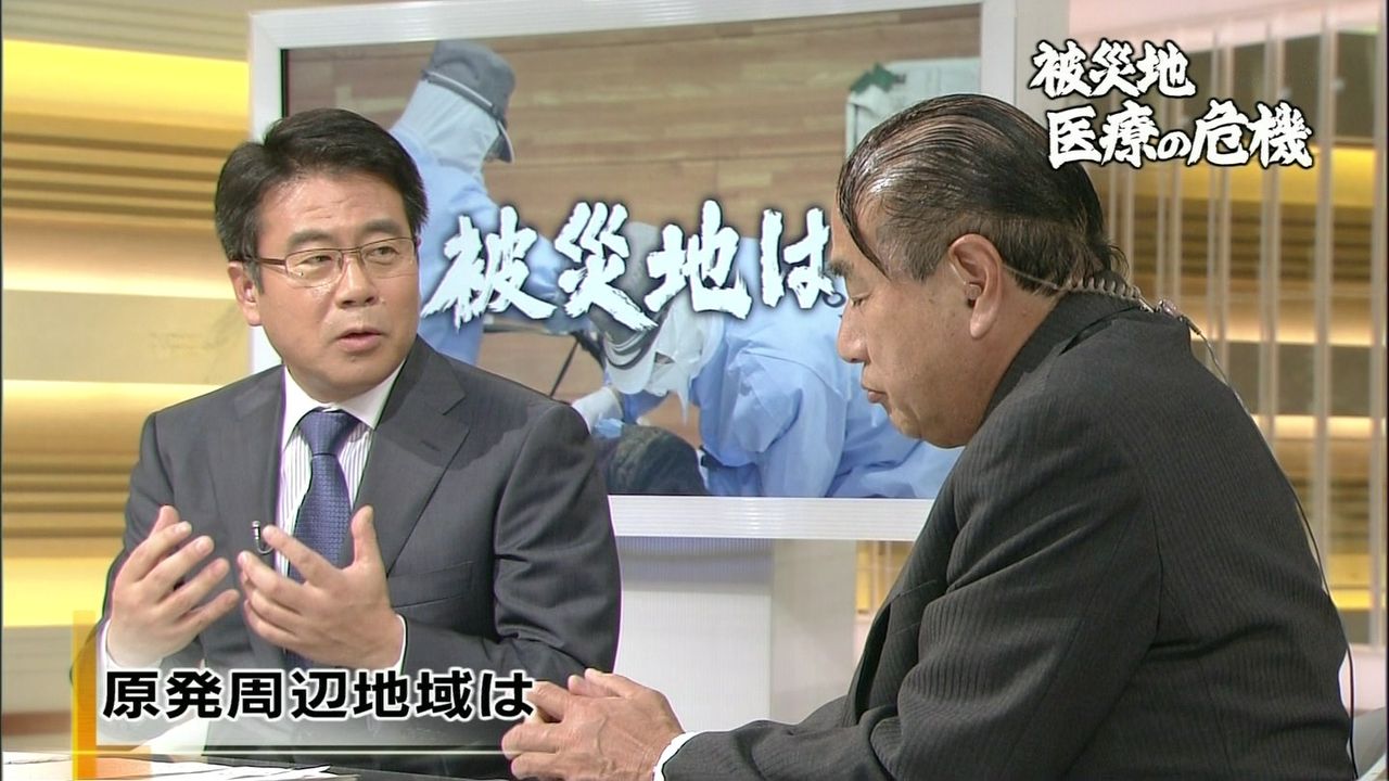 このひと救急学会かなんかの結構お偉いさんで、周りにも髪型指摘されるけど「僕はこの髪型がトレードマークなんです」って言ってるらしいよ。ウチの親父(医療関係者)がTV見て笑いながら言ってたあ at 2011年03月25日 16:51 ID:2Xx0tKhUO