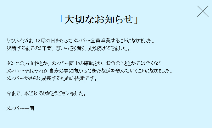 ケツメイシを誤字しただけかと思ったら全く知らない女性たちが解散しててワロタ、 at 2011年12月16日 17:31 ID:hBh5Cqef0