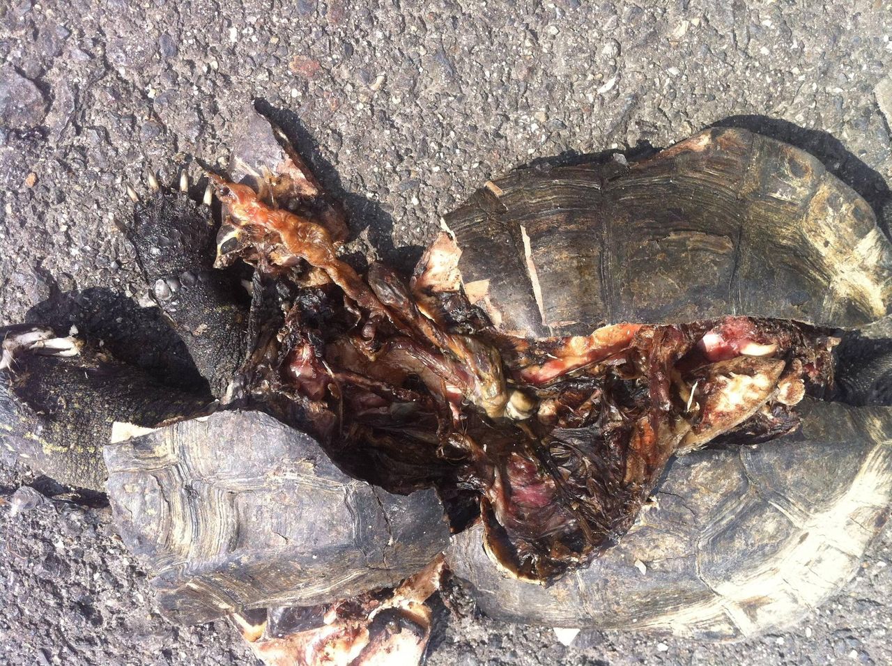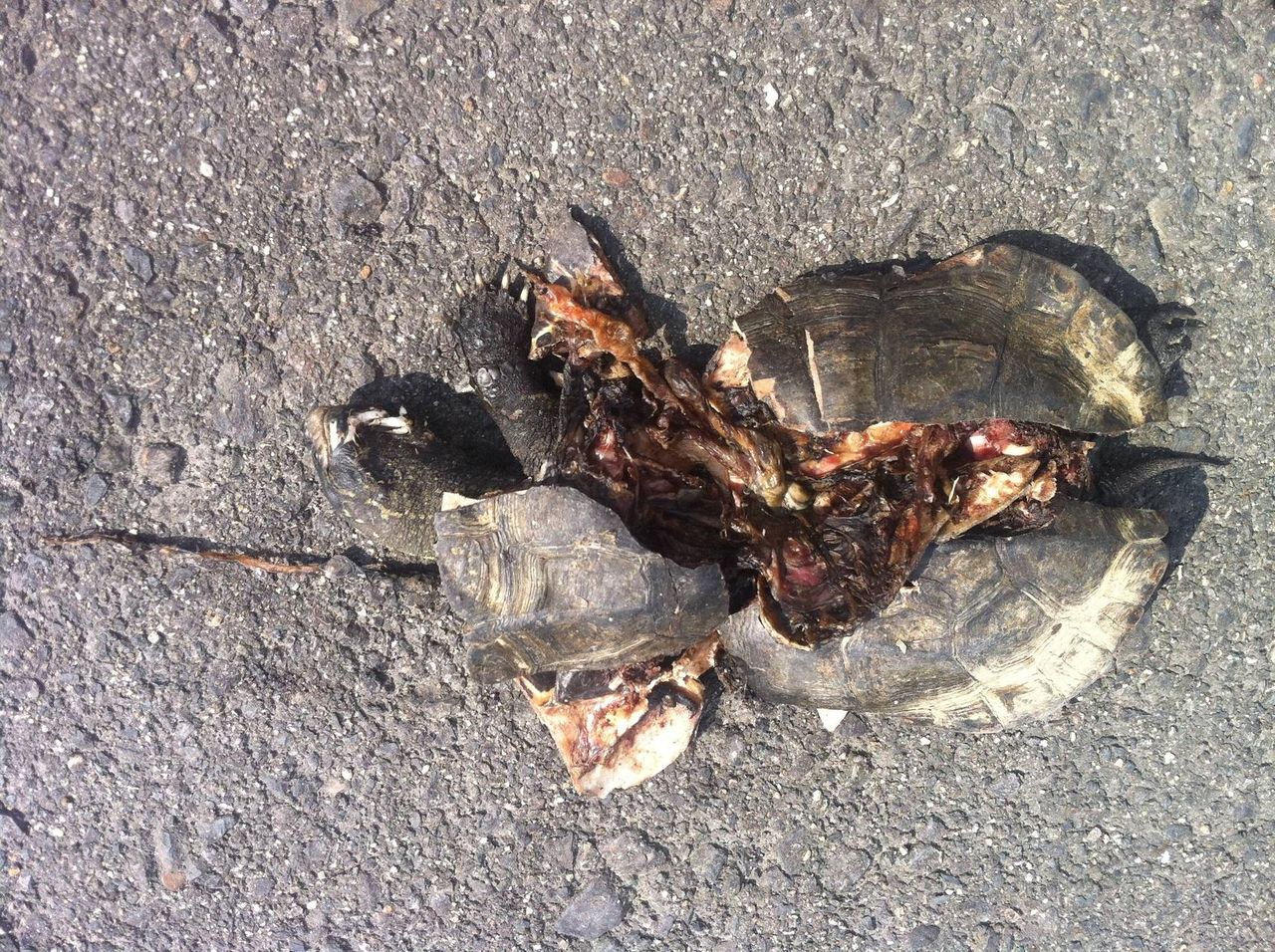 亀が車にひかれて死んでる…