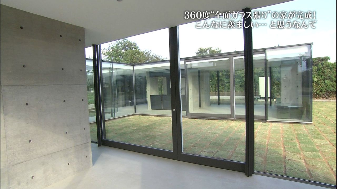 テーゼとして、ガラス張りの家は、想像できるけど、実際に建てちゃう人いるんだな。もみあげる名無し at 2013年05月04日 19:32 ID:DbN.dfs50