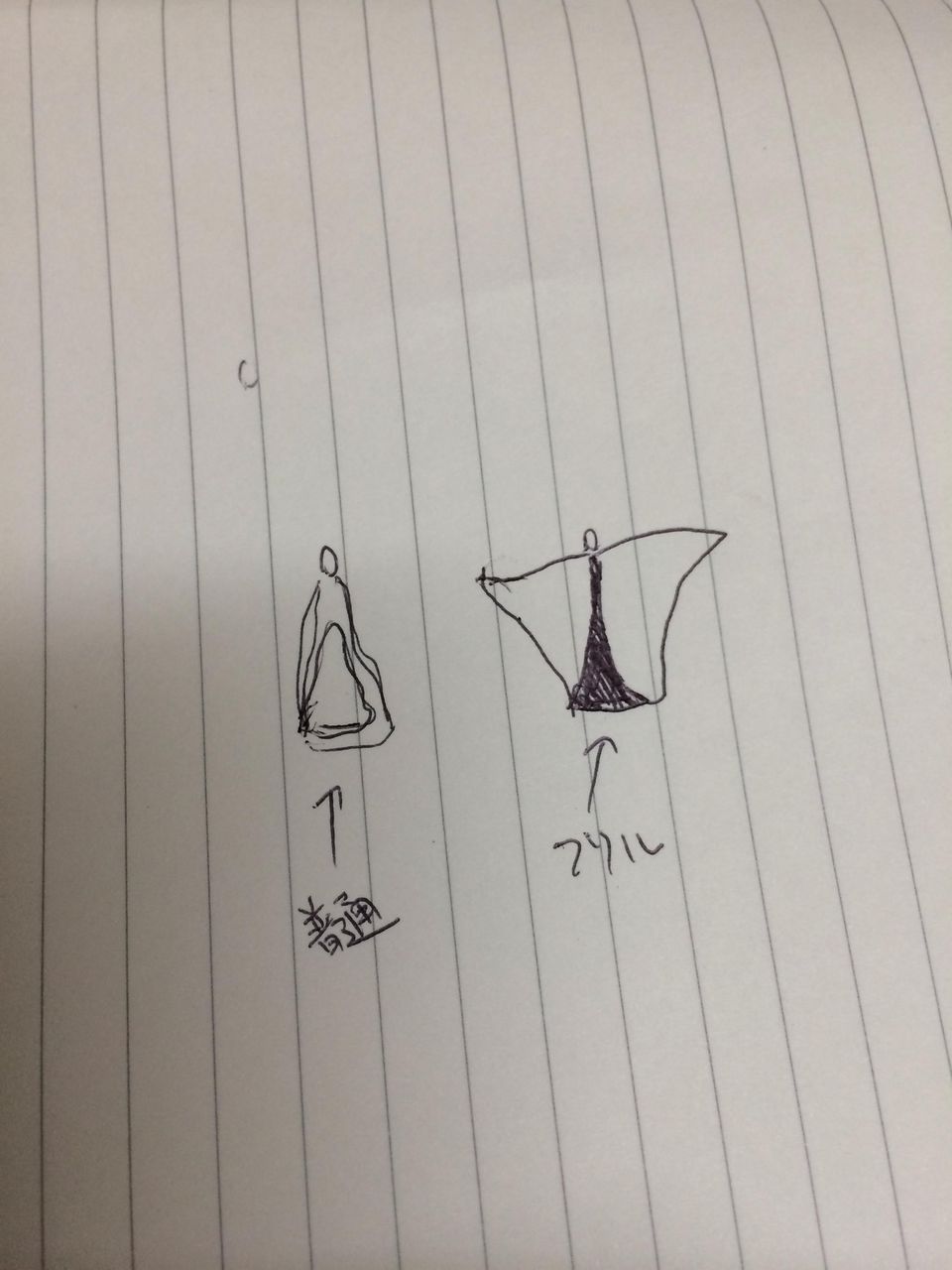 外側がふかふかすぎるのが悩み。モリマンていうのかな?だからフリルは隠れてる。この人はなんかスッキリしてるから目立つのもあるんかな。あ at 2013年11月11日 21:27 ID:HwCh3Otg0