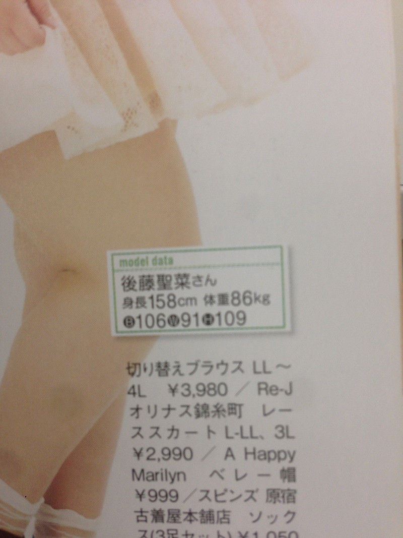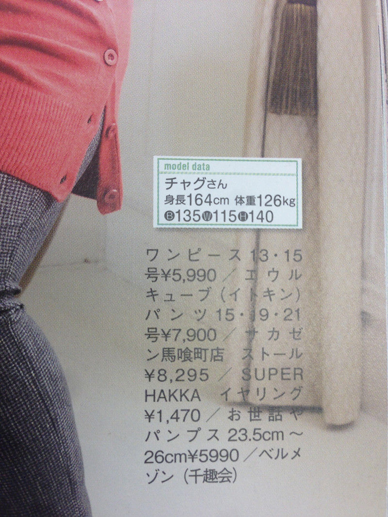 モデルの身長、スリーサイズに加えて体重が記載されていることです
