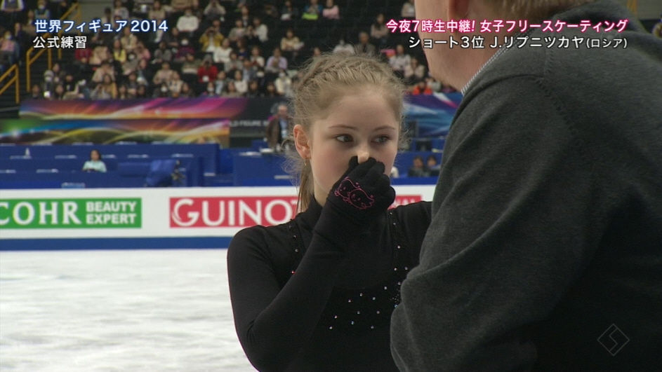 リプニツカヤたん、羽生結弦とお揃いの手袋で公式練習に登場