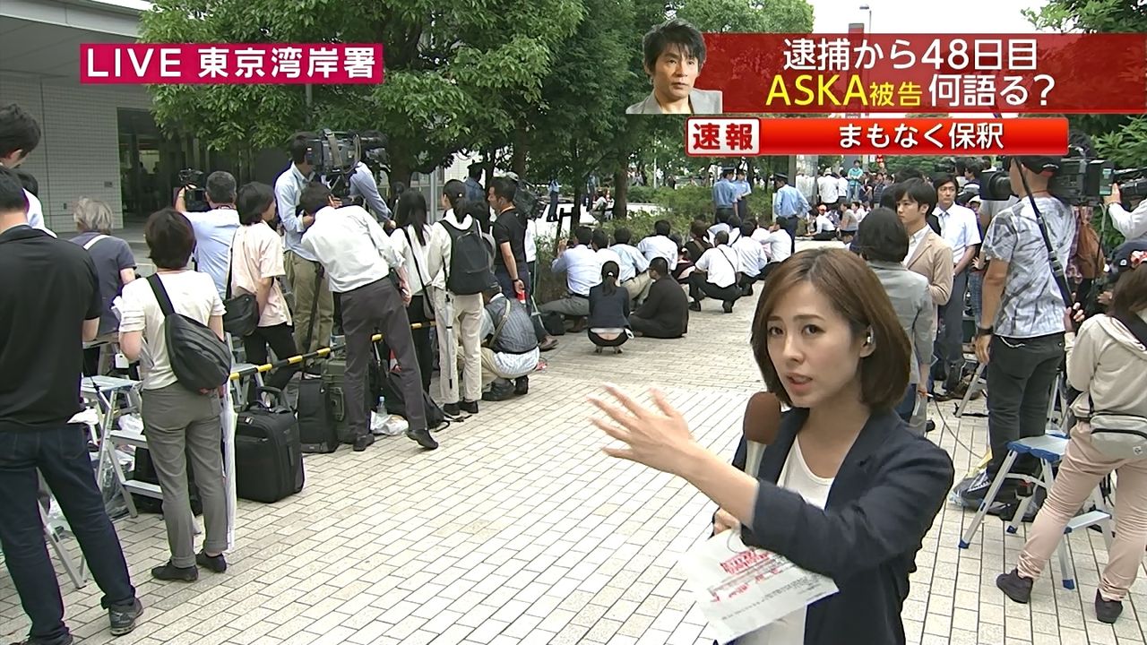 【放送事故】 ASKA釈放生中継で女性記者のケツの割れ目が映る