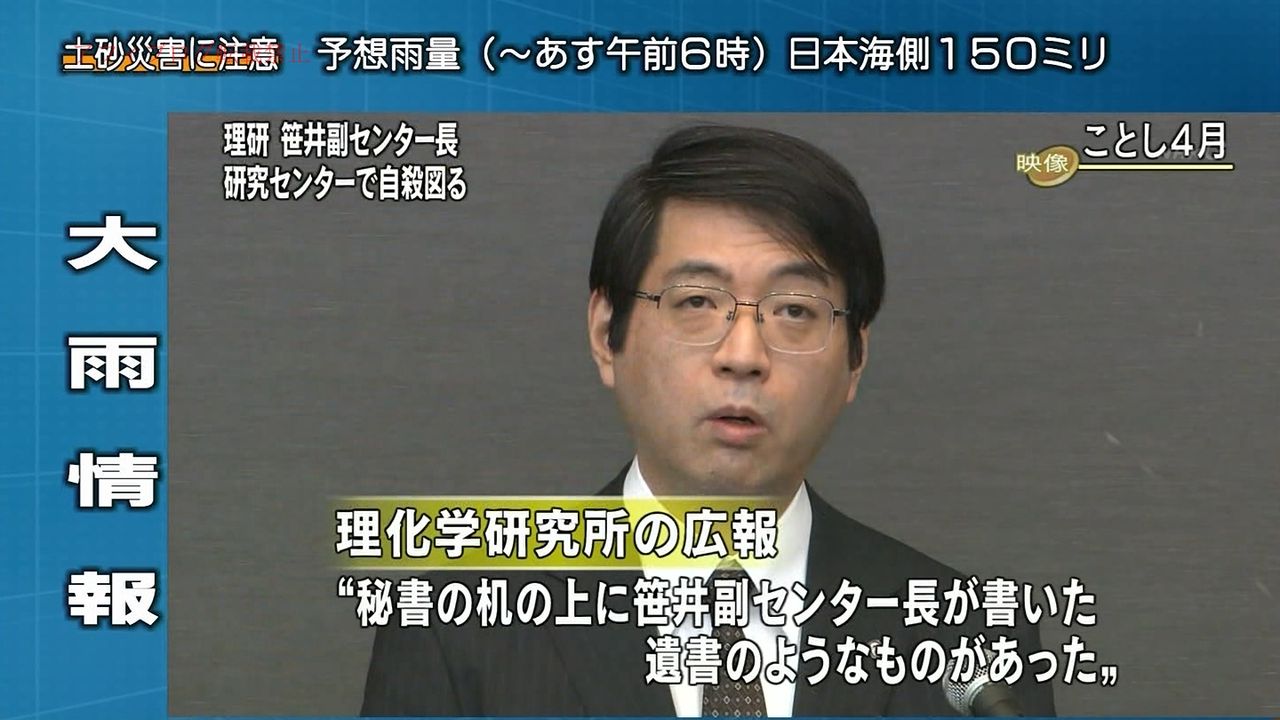 【訃報】 理研の笹井、自殺