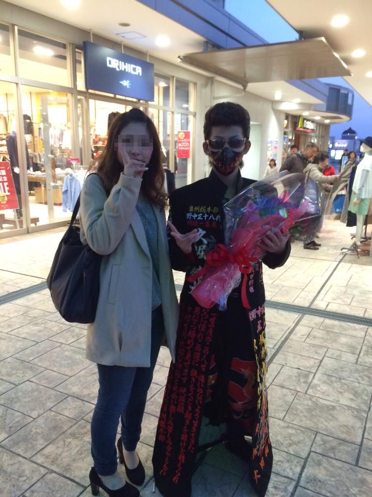 後ろにいるお爺ちゃんとお婆ちゃんに特攻服買ってもらったのかな