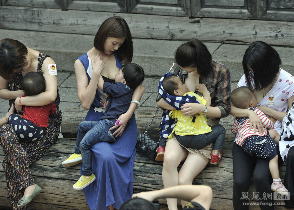 Breastfeeding flash mob: Crowds of Chinese mums nurse their babies in public 'to celebrate motherly love'