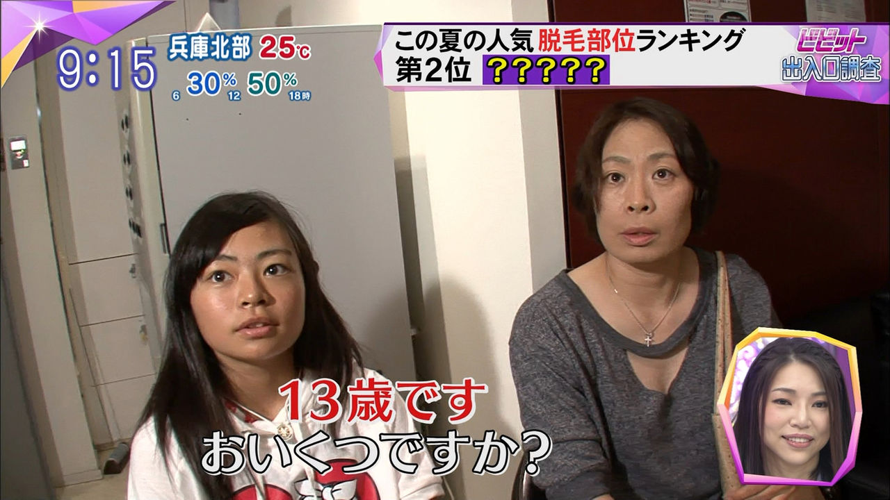 全国放送で脱毛の様子を晒される13歳とかいろいろ心配しちゃうわ名無し at 2015年06月23日 23:01 ID:.a.EAJ840