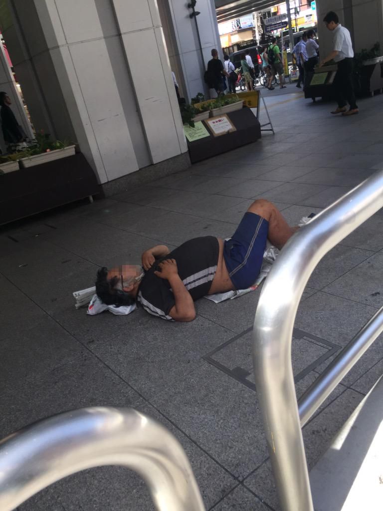 左足壊死ニキがとんでもない場所で寝てるんだがwww