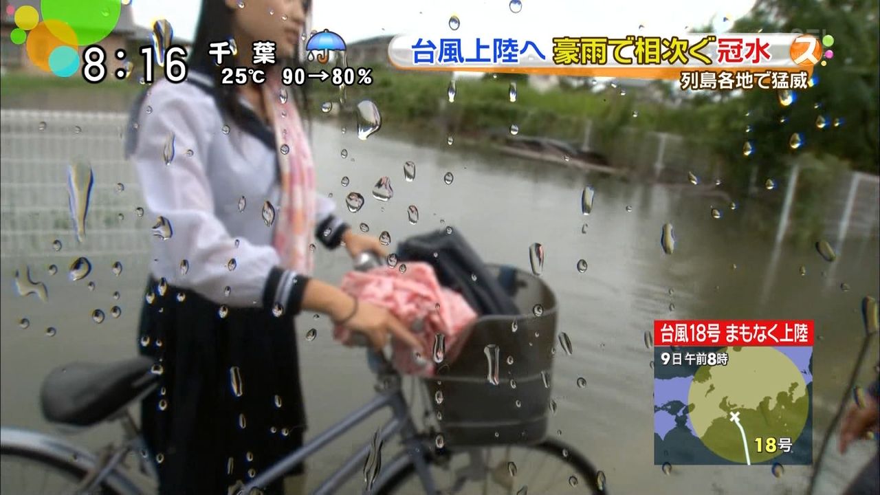 【画像】台風でヌレヌレスケスケの美少女JKがテレビに映る