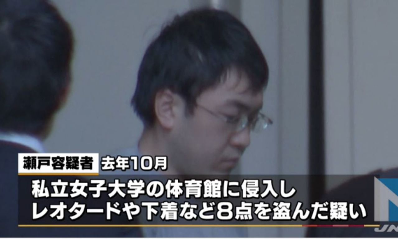 捜査関係者によると、瀬戸容疑者は平成27年10月25日、世田谷区内の私立女子大に侵入し、更衣室などから学生のレオタードや下着など計8点を盗んだ疑いが持たれている。