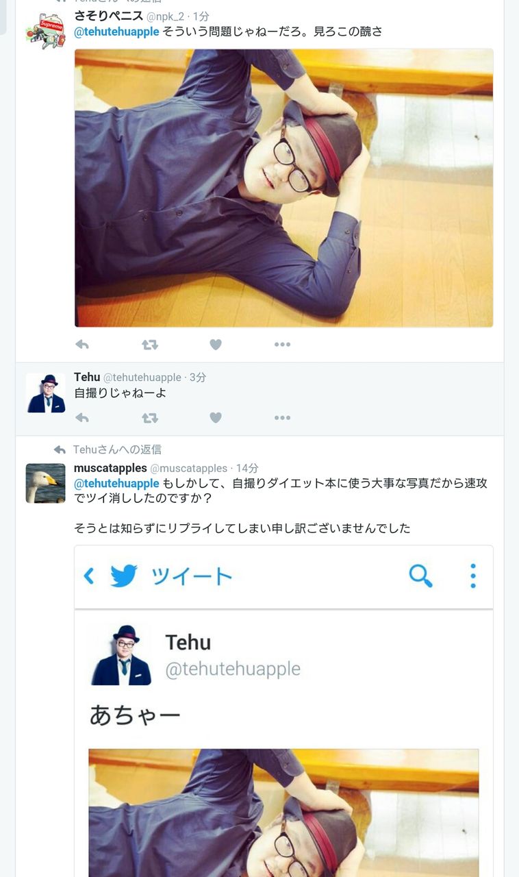【悲報】Tehuくん、キモ写真をツイートするも速攻で消すが即再うpされる