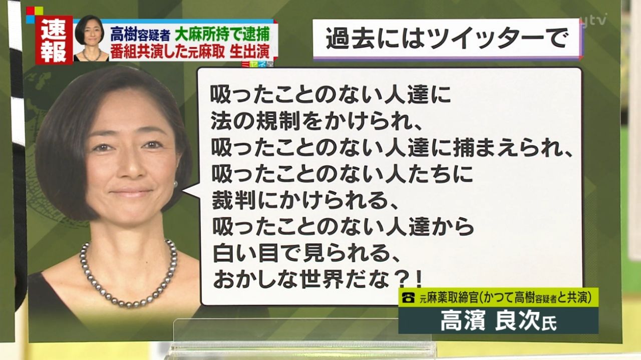 高樹沙耶「大麻を合法化しないとこの国は終わる」←なにいってだこいつ