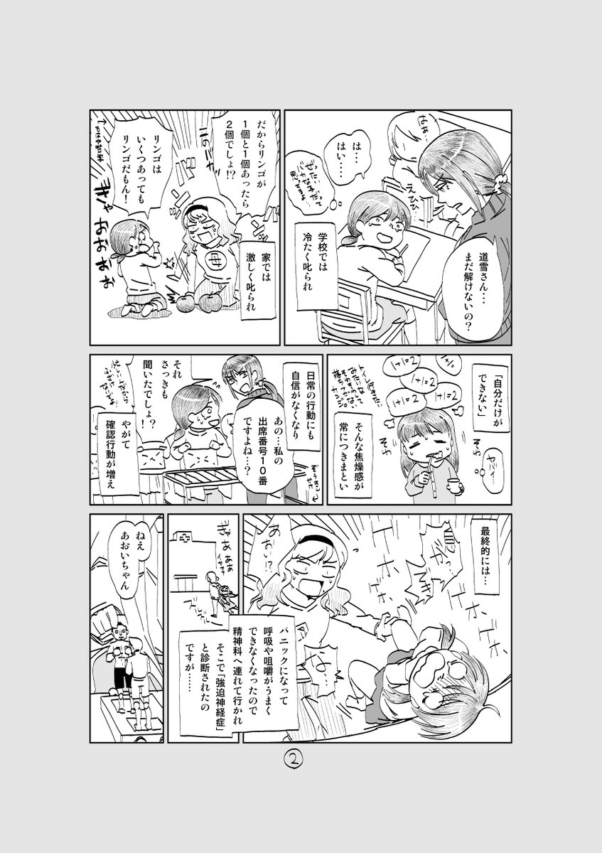 小1の時に1+1がどうして2になるのかわからなくて、強迫神経症になった話の漫画です。ギャグみたいだけど当時はほんっとにつらかった。