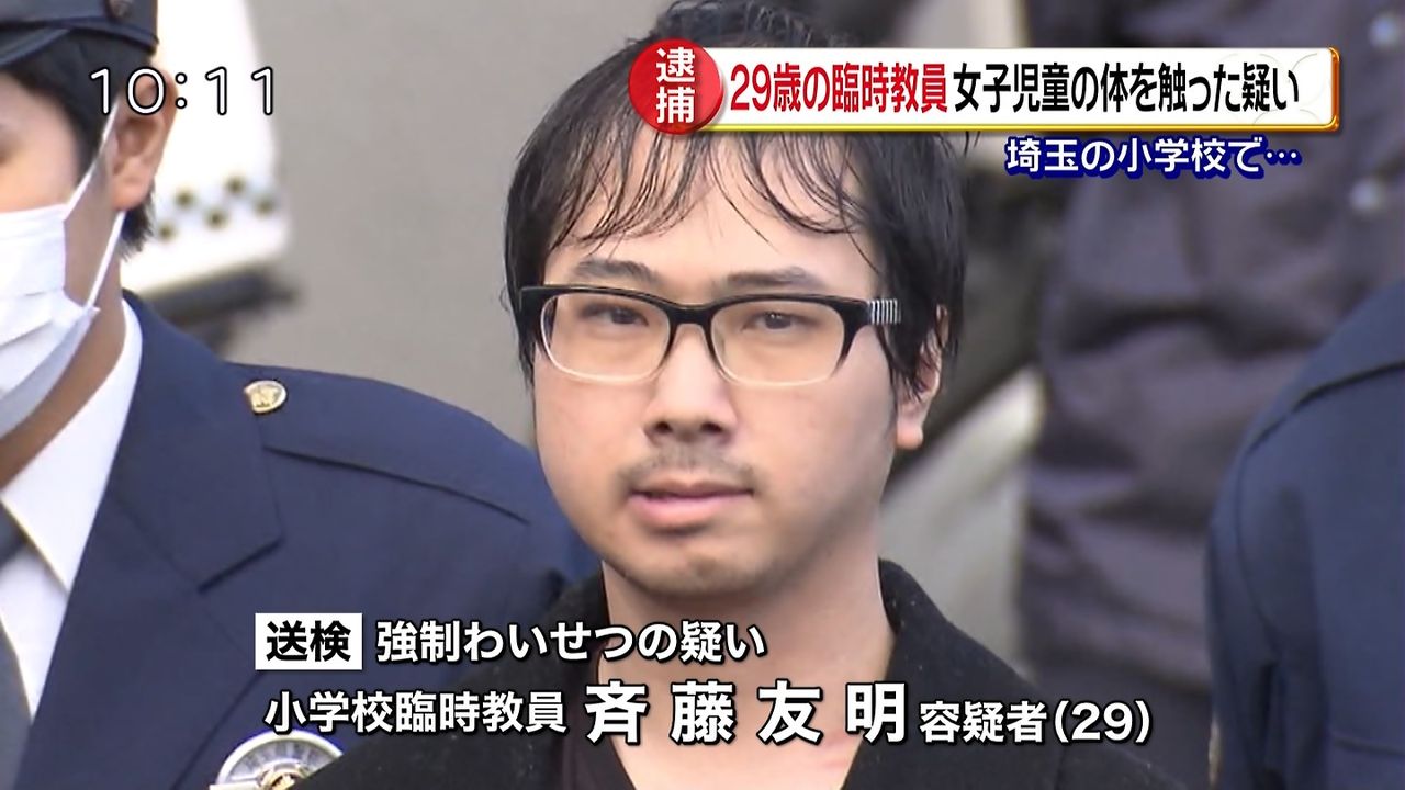 小学校の教師・斎藤友明容疑者(29)は2月上旬、当時、勤めていた埼玉県内の小学校で女の子の体を触るわいせつな行為をした疑いが持たれています。