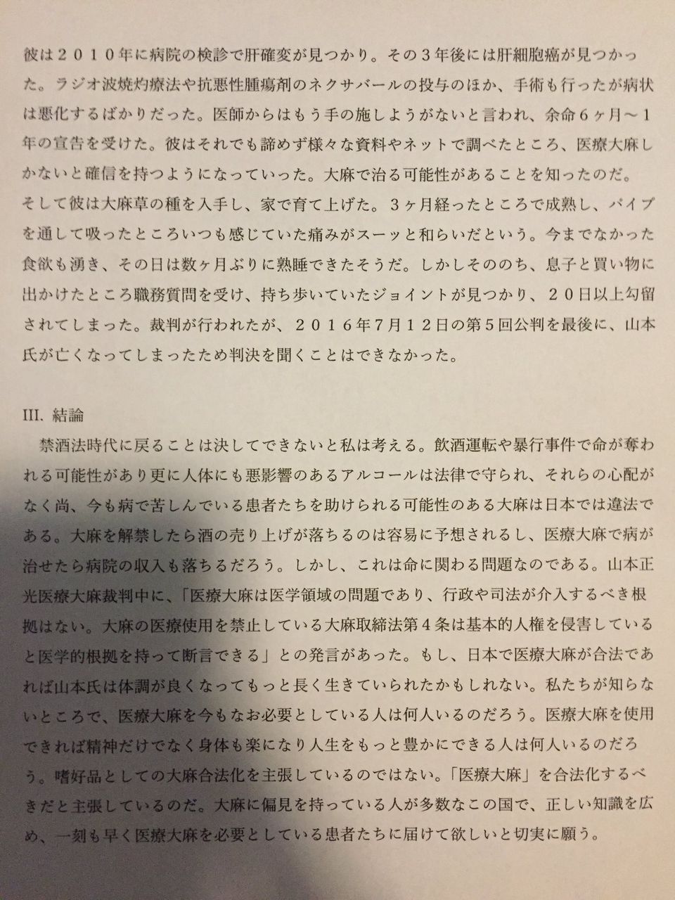 これを論文と称すな。どう見ても作文やろが。大体医療大麻への話の移行が唐突すぎんだよ。マリファナを歌手が摂取してるから、医療大麻を調べるでは、突飛すぎる。なんの側面から見てるのかがさっぱりわからないくそ作文。学名ナナシ at 2018年01月11日 21:56 ID:EEv8TcHG0