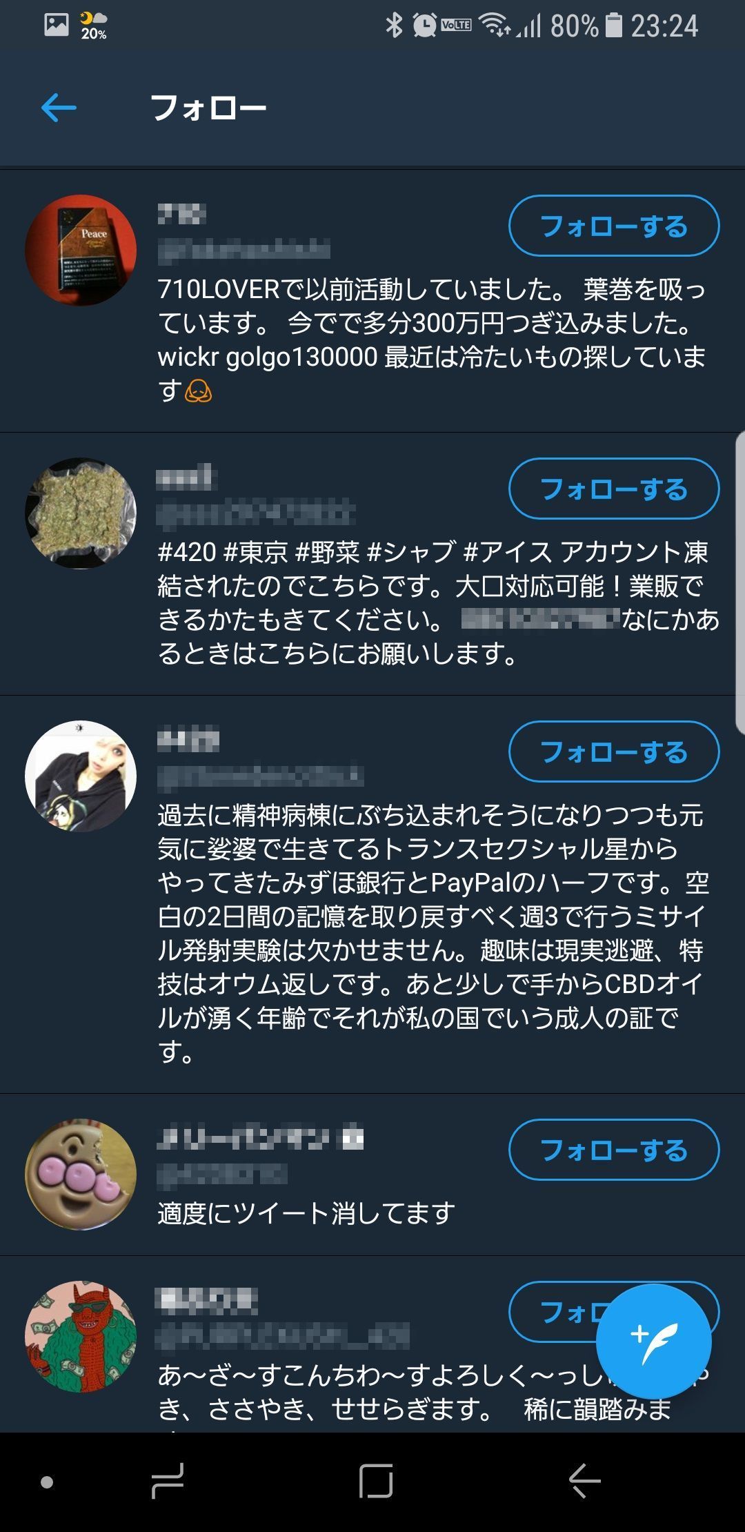 こういう垢を非公開リストにぶっこんで監視してるんだが
