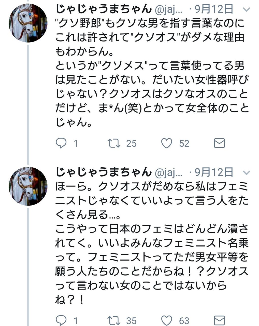 男性専用という四文字だけでマジギレするくせになにいっとるんやこいつ
