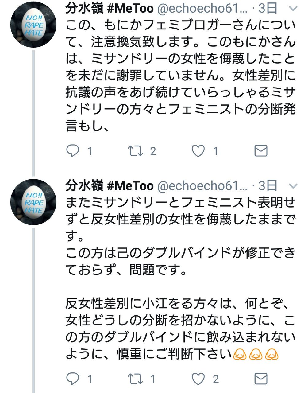 Twitter女子さん「女性は、男性が周りにいるだけで不安になる。この世界のどこが女尊男卑なんだ?」