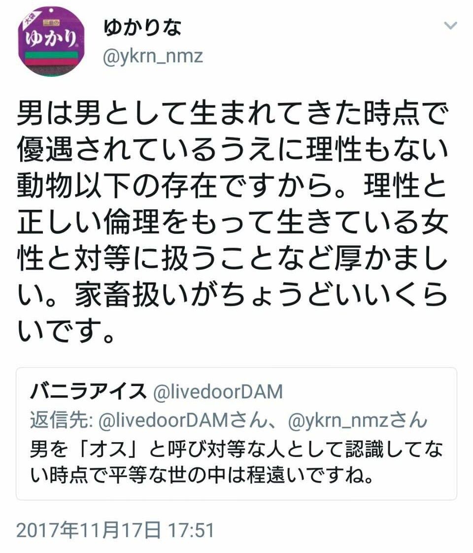 男はカスクズゴミだよ!もみあげる名無し at 2018年01月25日 01:28 ID:CpkgkoH.0