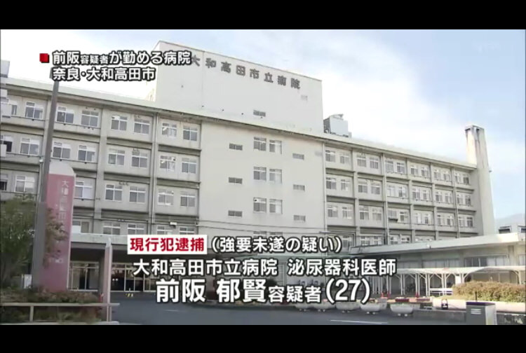 きょう未明、橿原市内のカラオケ店で18歳の男性の口元に下半身を近づけ、脅したなどとして、大和高田市立病院の医師・前阪郁賢容疑者(27)が逮捕されました。警察によりますと、前阪容疑者は男性に現場のカラオケ店を紹介したことで知り合い、当時、酒に酔っていたといいます。警察では動機や当時の状況などを詳しく調べています。