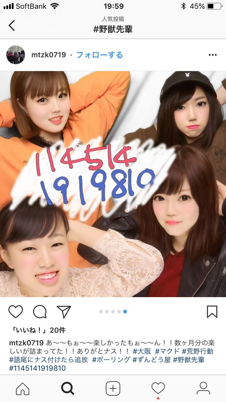 実際にインスタグラムで「#野獣先輩」を検索すると、1000件超の投稿が引っかかる。本編のキャプチャーやコラージュ画像に続いて目立つのが、上記のポーズを決めた写真だ。ほとんどは若い男女で、中には制服姿の男子高校生、女子高校生らしき姿も。プリクラのほか、旅行先などでの集合写真など、部活やサークルなどで撮影されたと思われる、和気あいあいとしたショットも多い。大部分は、ネット文化などとは縁遠そうな「リア充」「陽キャ」という印象だ。