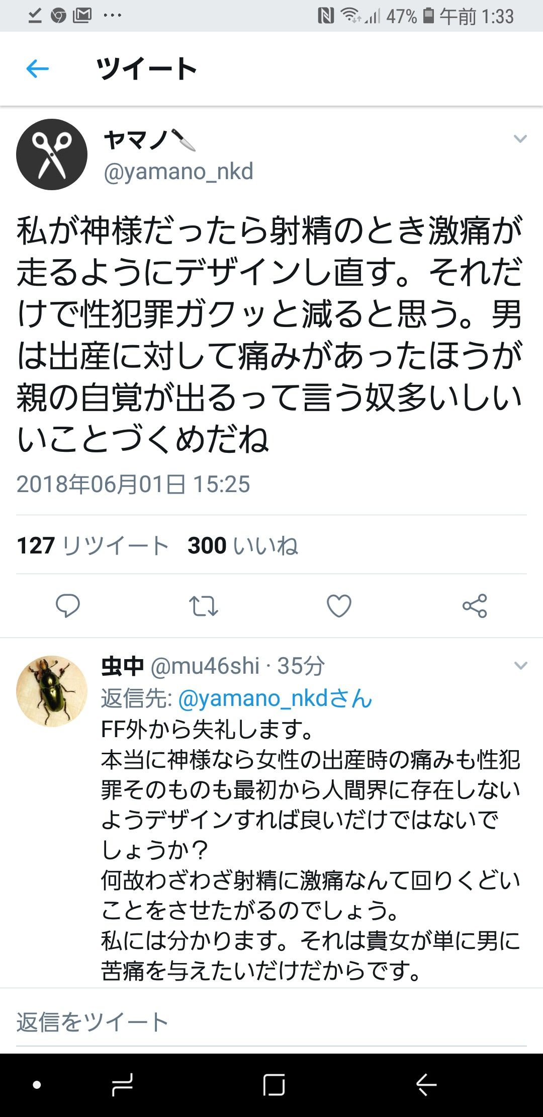 Twitter女さん「私が神だったら男の射○時に激痛を伴うようにする、女だけ出産が痛いのは不公平」