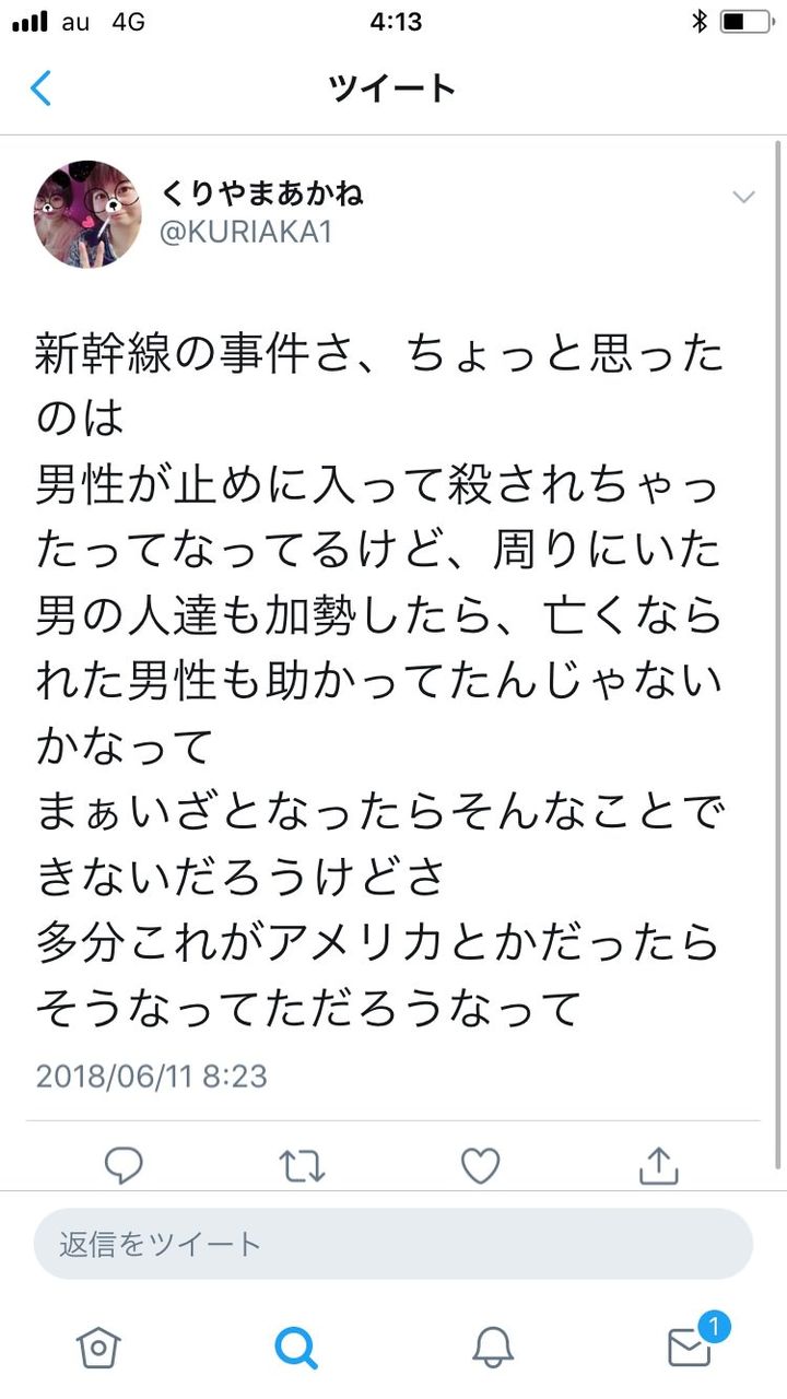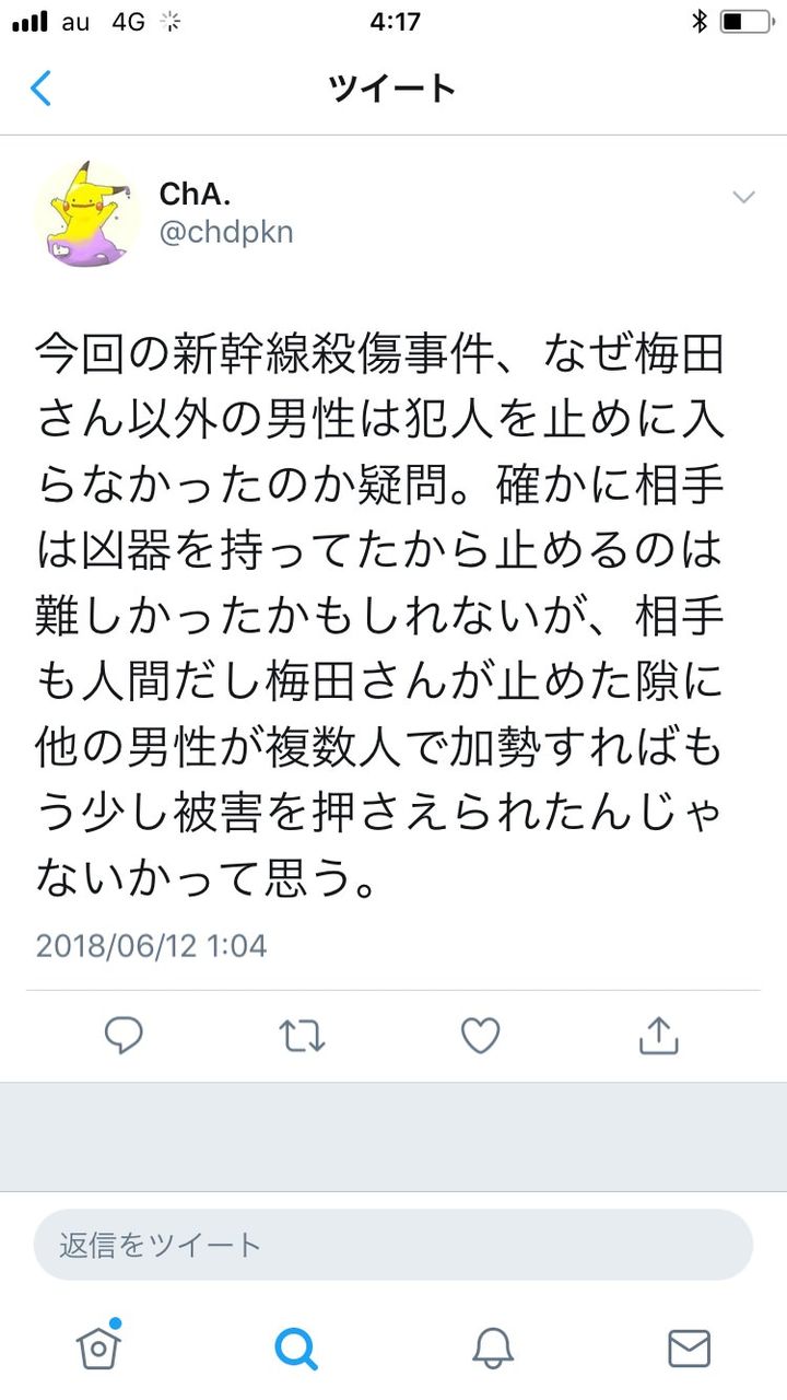 逃げた人を非難するわけではないけど俺なら絶対に立ち向かうねあ at 2018年06月15日 01:02 ID:HSOsnjIy0