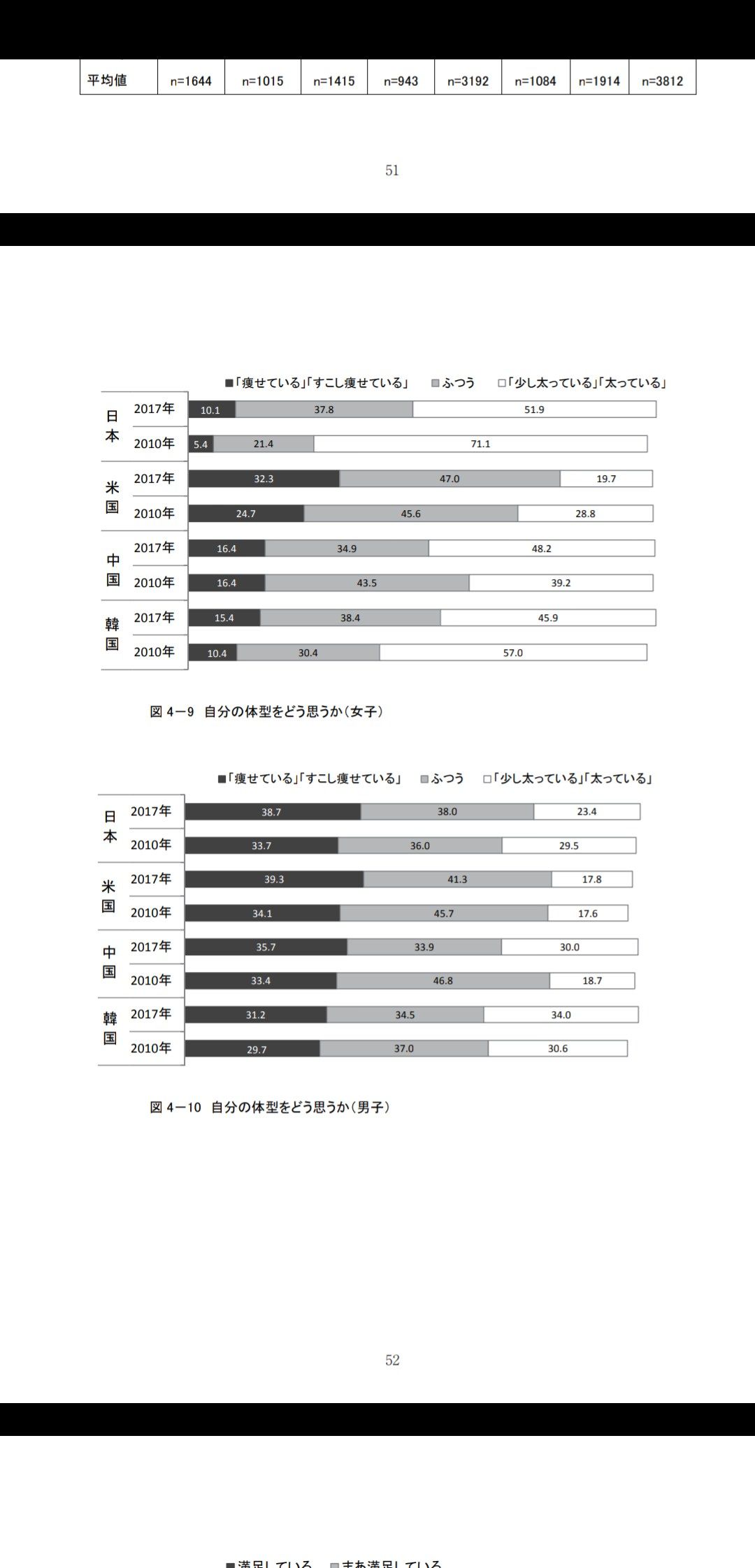 自分の体型をどう思うか?の質問おかしいよね。各国で太ってる痩せてるの基準が違うし、ポジティブなアメリカとネガティブな日本を比べてどうするの?