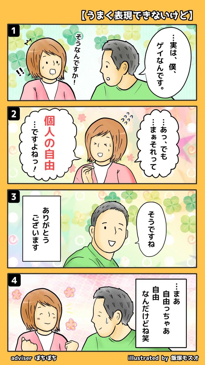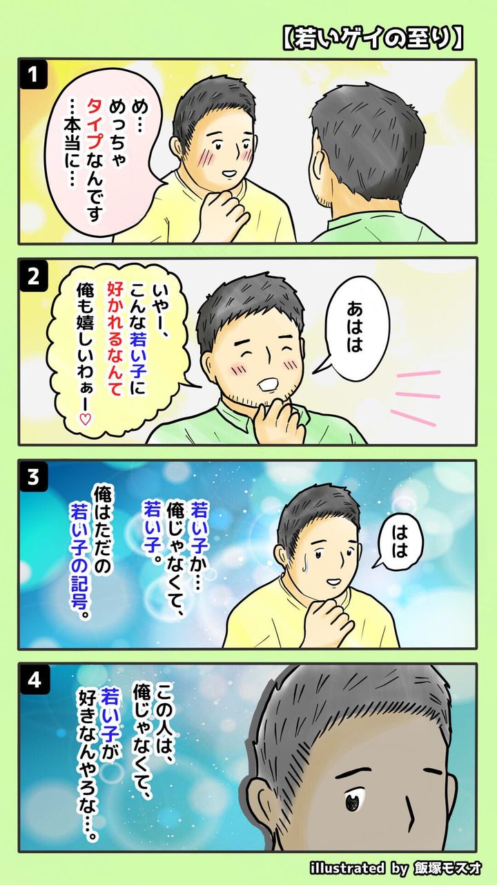 この4コマ漫画は一般向けじゃなくてゲイweb連載とかじゃないか?対象であるゲイ読者に暗黙の了解が多くて一般には理解しにくいと思われる