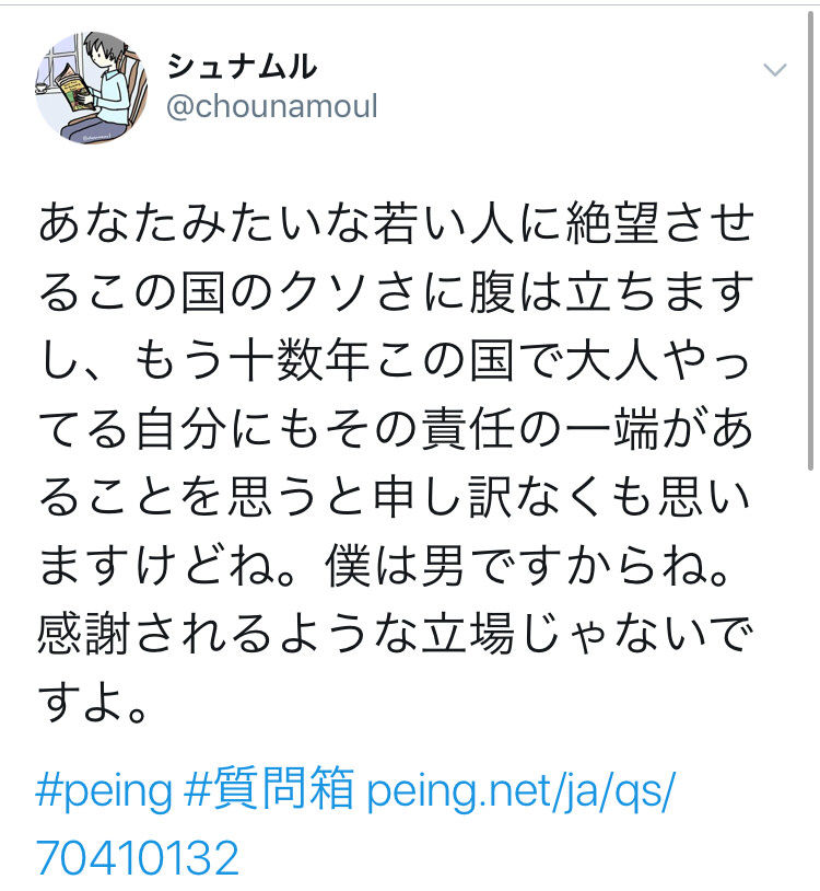 自分のことを知的だと思ってるオタクみたいなキモいアカウントだなもみあげる名無し at 2018年09月13日 10:54 ID:mhcs8N7R0