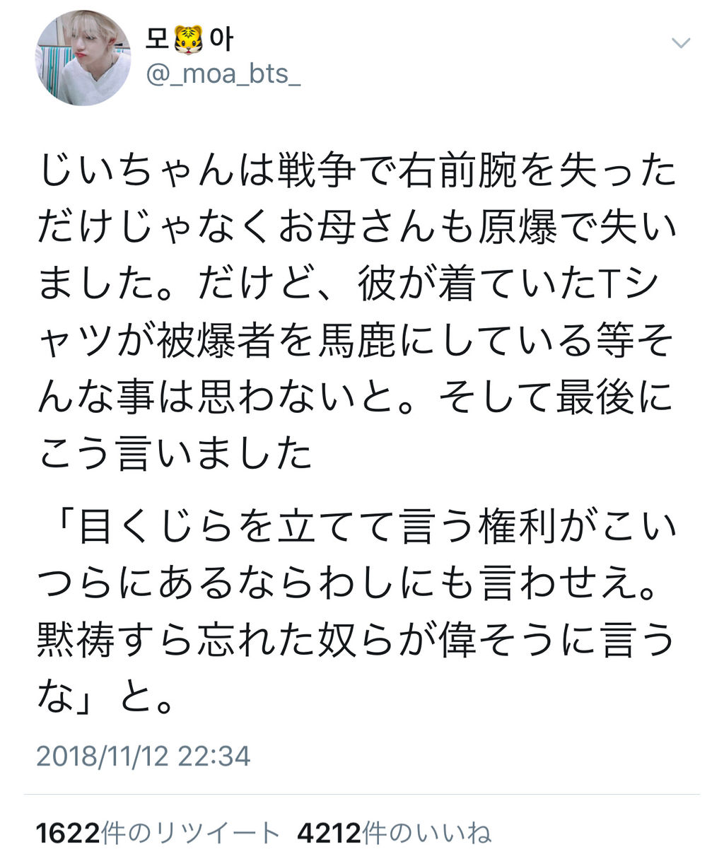 死人引っ張り出して日本批判とはBTSファンの鏡wもみあげる名無し at 2018年11月13日 12:29 ID:dItrjIUs0