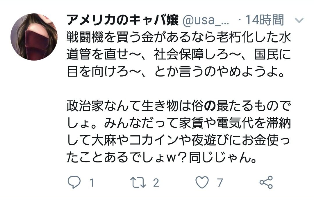 アメリカ人のキャバ嬢だったらまだ分かるがアメリカのキャバ嬢って何だ…?あ at 2018年12月01日 22:49 ID:rwxbUVVZ0
