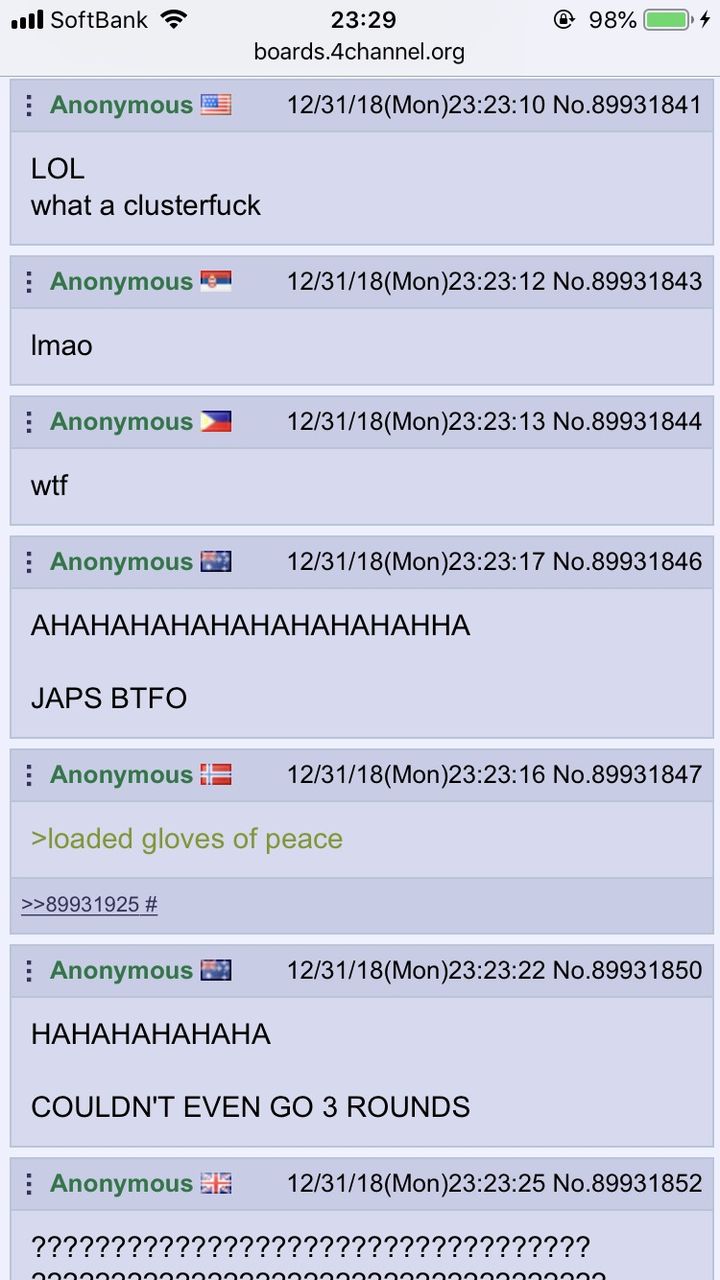 その中で無双したってボクシングに敵うわけないもみあげる名無し at 2019年01月01日 14:13 ID:xDrc9VKx0 -